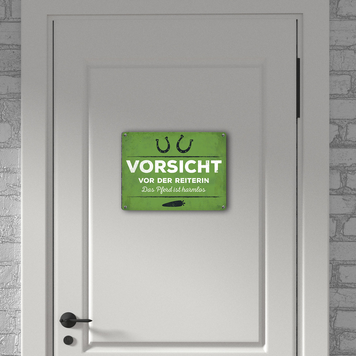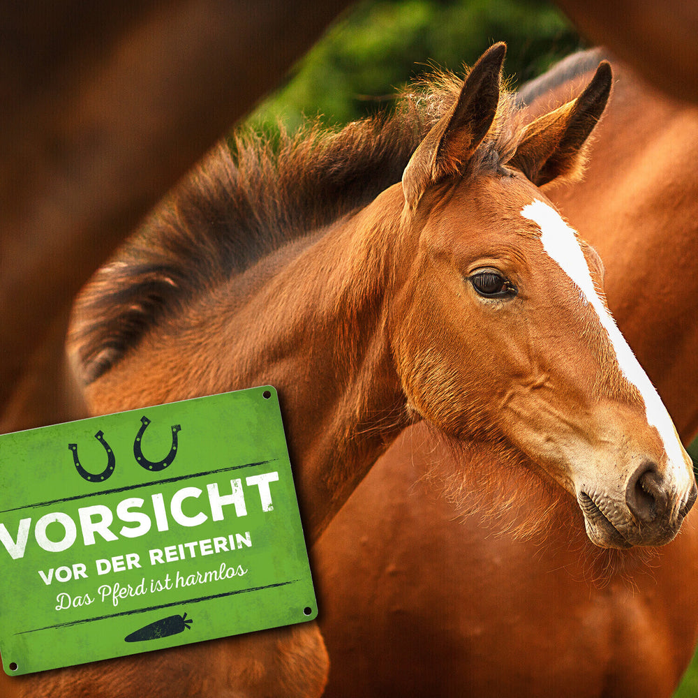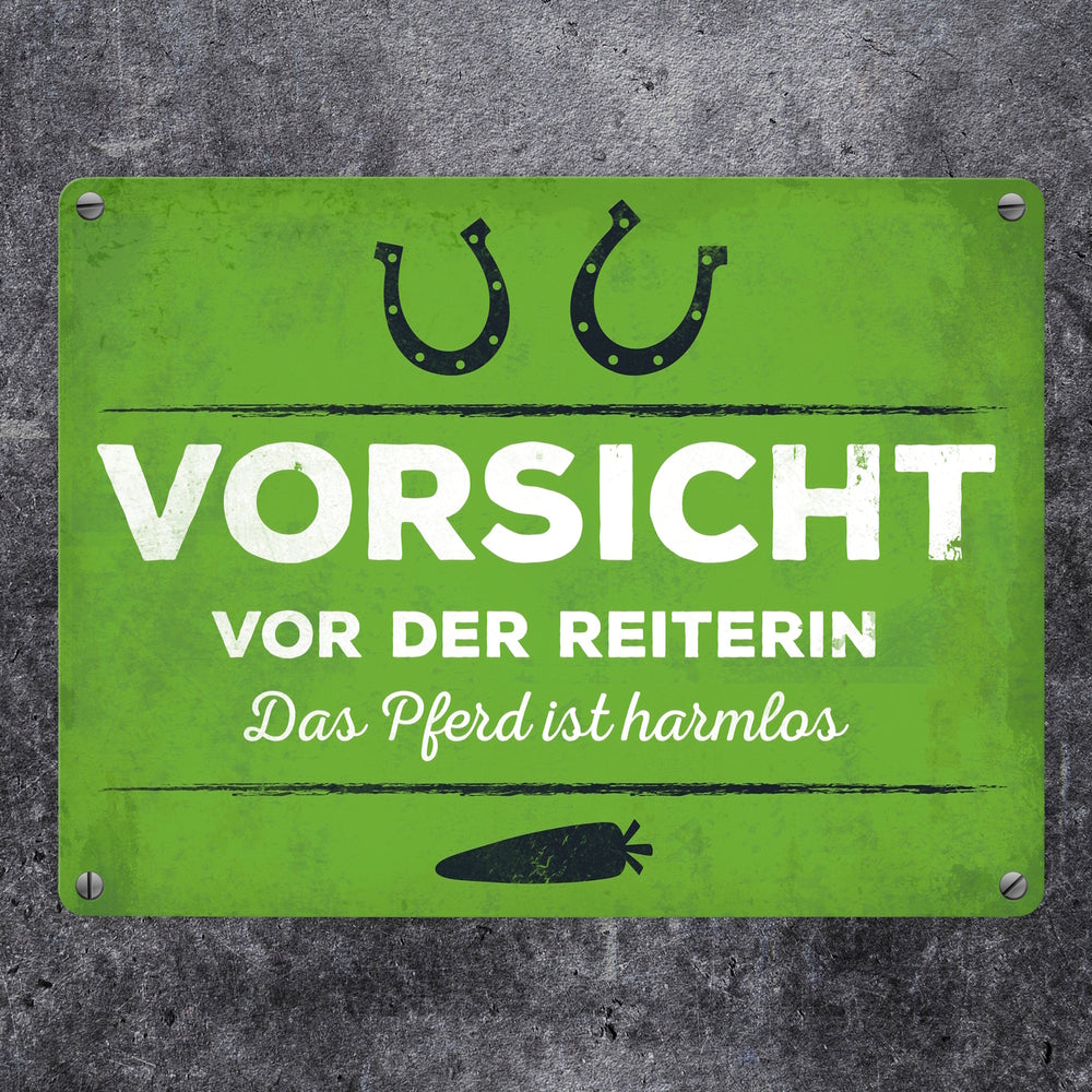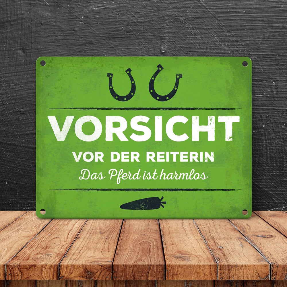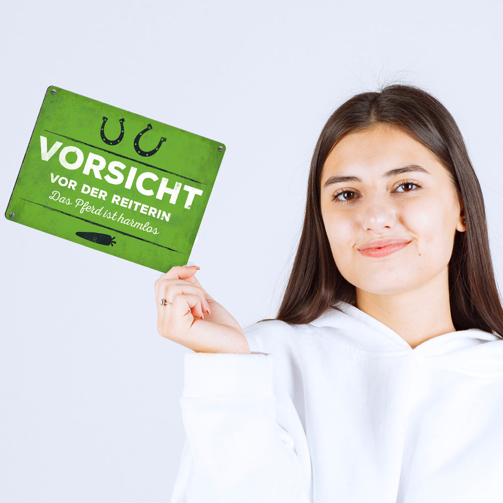 - 1x Metallschild mit Spruch: Vorsicht vor der Reiterin... in der gewählten Größe