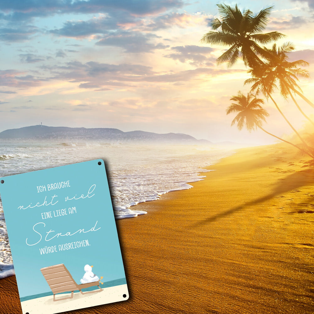 Möwe Metallschild in 15x20 cm mit Spruch Brauche nur Strandliege - 15x20 cm ist auf Lager und wird versandt, sobald es wieder verfügbar ist