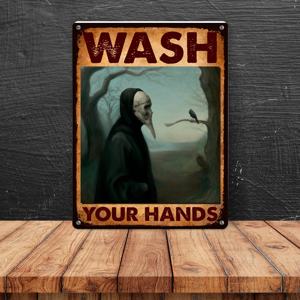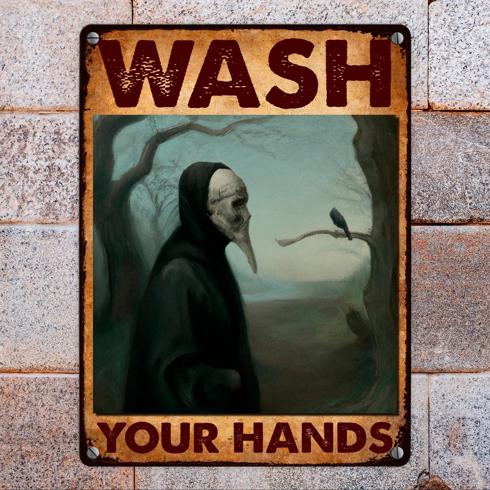 Pestdoktor Metallschild in 15x20 cm mit Spruch Wash your Hands