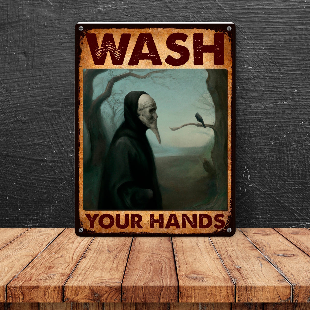 - Der Pestdoktor auf dem Metallschild ist eine tolle Geschenkidee für Freunde zum Geburtstag. Es erinnert sie an die Wichtigkeit der regelmäßigen Hygiene, insbesondere das Händewaschen. Das Blechschild kann überall im Badezimmer angebracht werden.