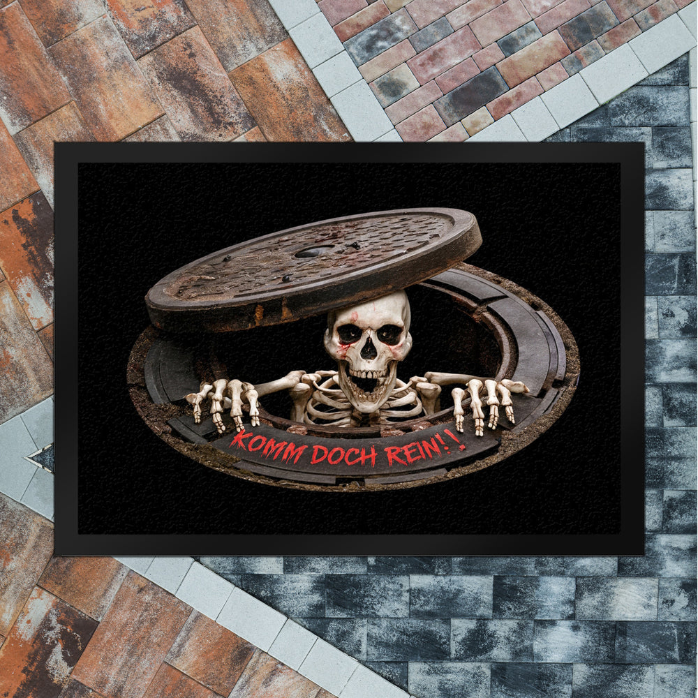 - 1x Skelett unter Kanaldeckel Fußmatte in 35x50 cm - Komm doch rein in der gewählten Größe