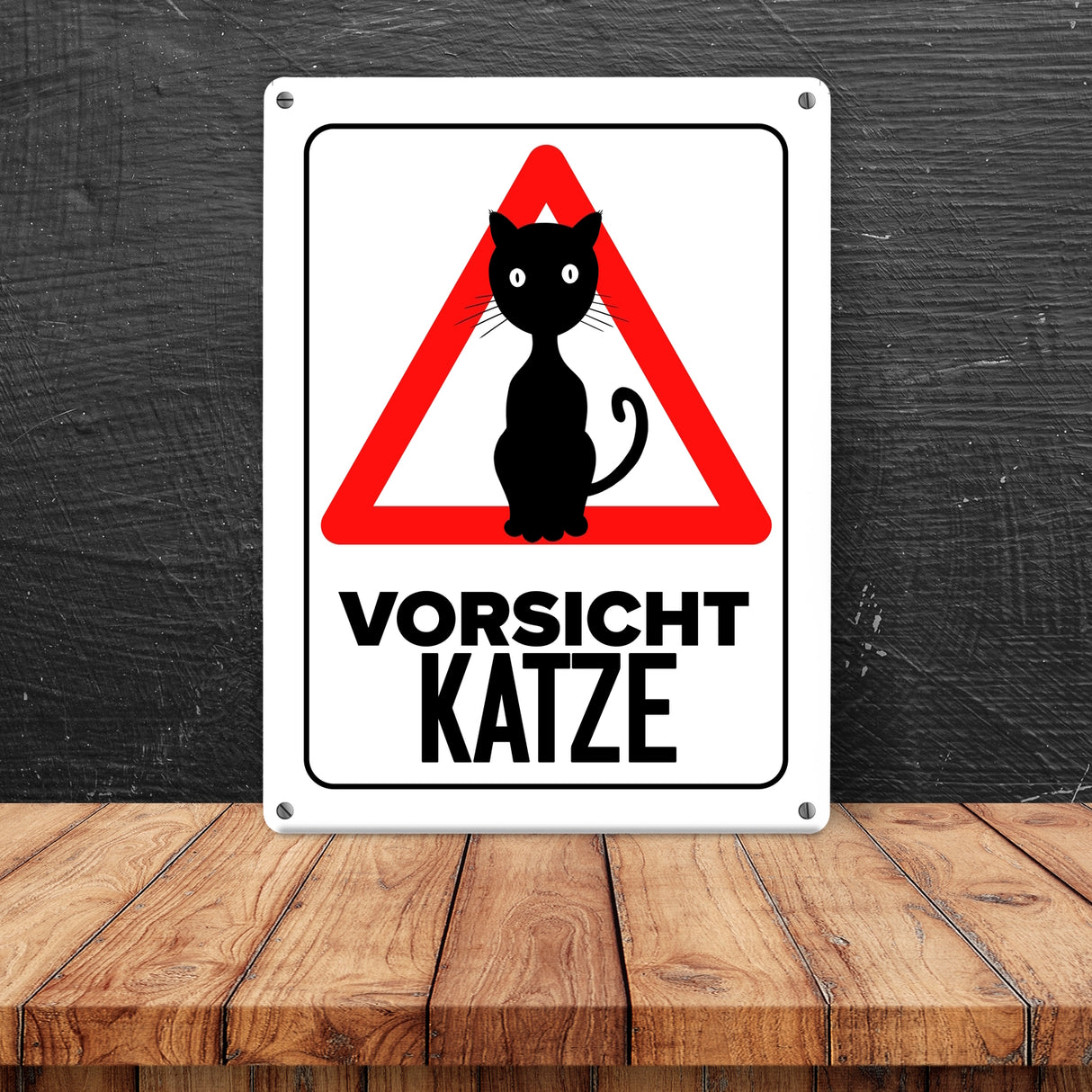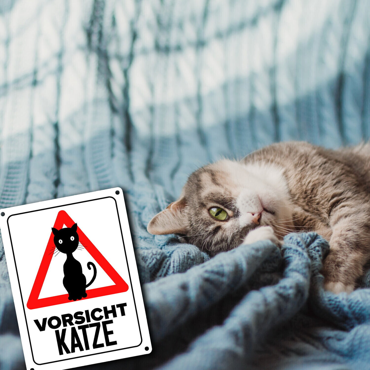• 1x Vorsicht Katze Metallschild mit Katzen Silhouette in der gewählten Größe