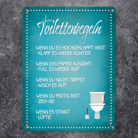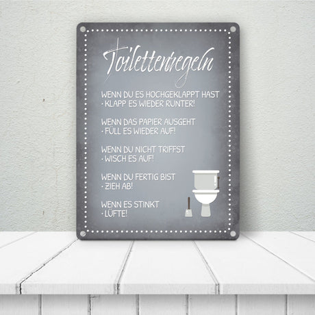 Ab €8,95Grundpreis /Nicht verfügbarAuf LagerToilettenregeln Metallschild mit Toilette Motiv Klo Sauberkeit Hygiene