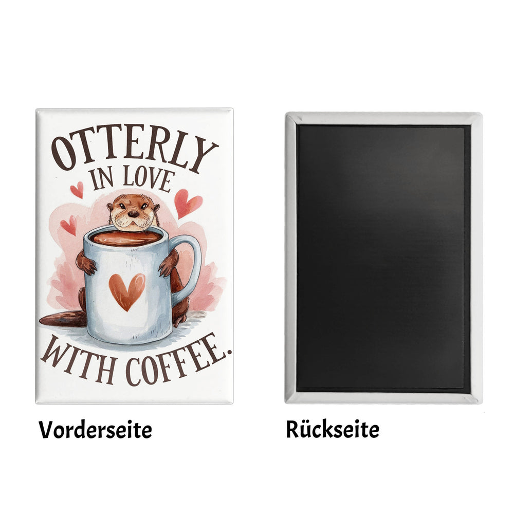 Der rechteckige Magnet zeigt ein niedliches Design: Ein entzückender Otter umarmt eine riesige Kaffeetasse, umgeben von schwebenden rosa Herzen auf einem sanften Pastellhintergrund. Über diesem verspielten Bild prangt der lustige Spruch "Otterly in lo Hinweise: Größe: ca. 8x5,5 cm