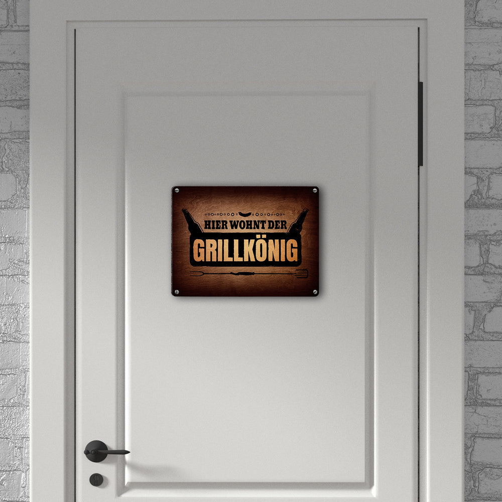- 1x Hier wohnt der Grillkönig Metallschild in der gewählten Größe