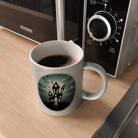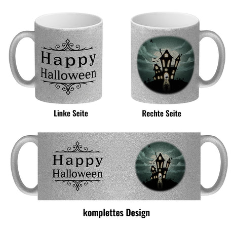 Ab €6,95Grundpreis /Nicht verfügbarAuf LagerKaffeetasse mit gruseligem Geisterhaus Motiv und Spruch - Happy Halloween