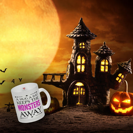 Ab €8,95Grundpreis /Nicht verfügbarAuf LagerKaffeetasse für Halloween mit Spruch - A hug a day keeps the monsters away
