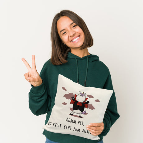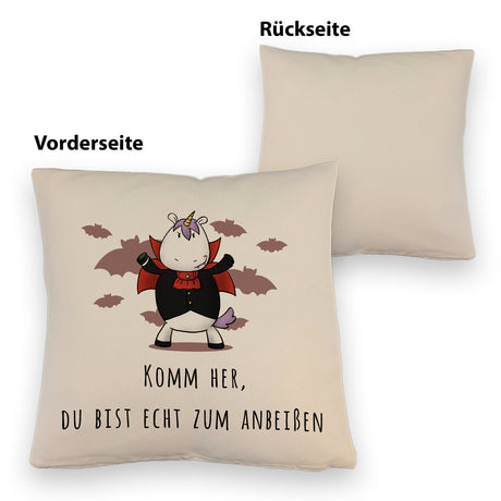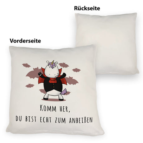 €5,95Grundpreis /Nicht verfügbar Einhorn-Vampir Kissen mit Spruch Du bist echt zum Anbeißen