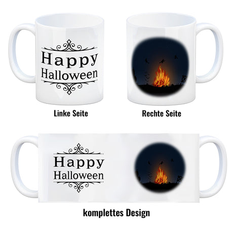 Ab €12,95Grundpreis /Nicht verfügbarAuf LagerKaffeetasse mit gruseligem Hexenfeuer Motiv und Spruch - Happy Halloween