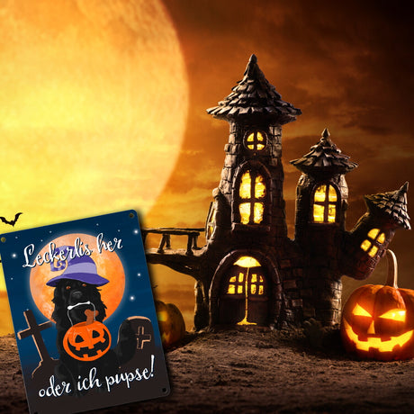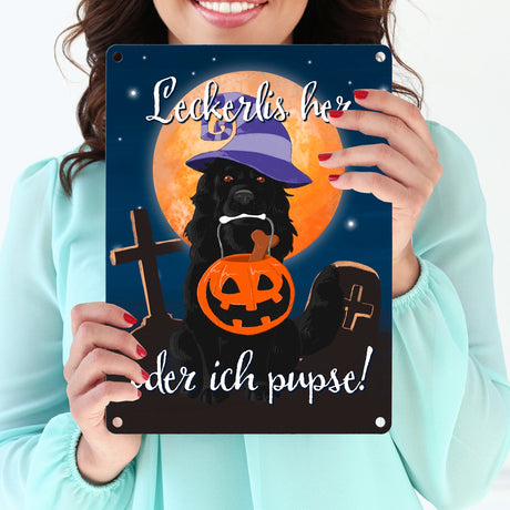 Ab €12,95Grundpreis /Nicht verfügbarAuf LagerLeckerlis her oder ich pupse Halloween Metallschild mit schwarzem Hund