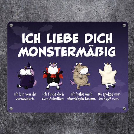 Ab €16,95Grundpreis /Nicht verfügbarAuf LagerEinhorn-Monster Metallschild in 15x20 cm mit Spruch Ich liebe dich monstermäßig