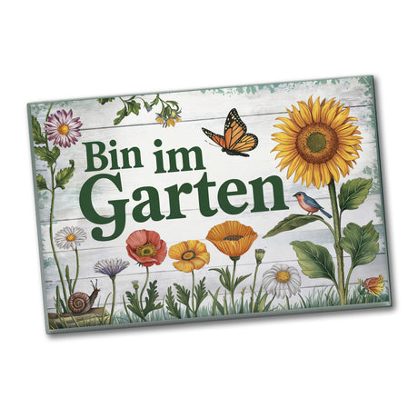 Bin im Garten Metallschild in 15x20 cm mit Schmetterling und Blumen