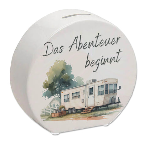 Abenteuer Wohnwagen Spardose mit Spruch Das Abenteuer beginnt