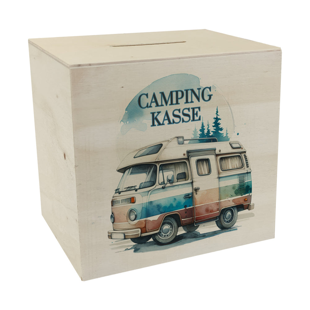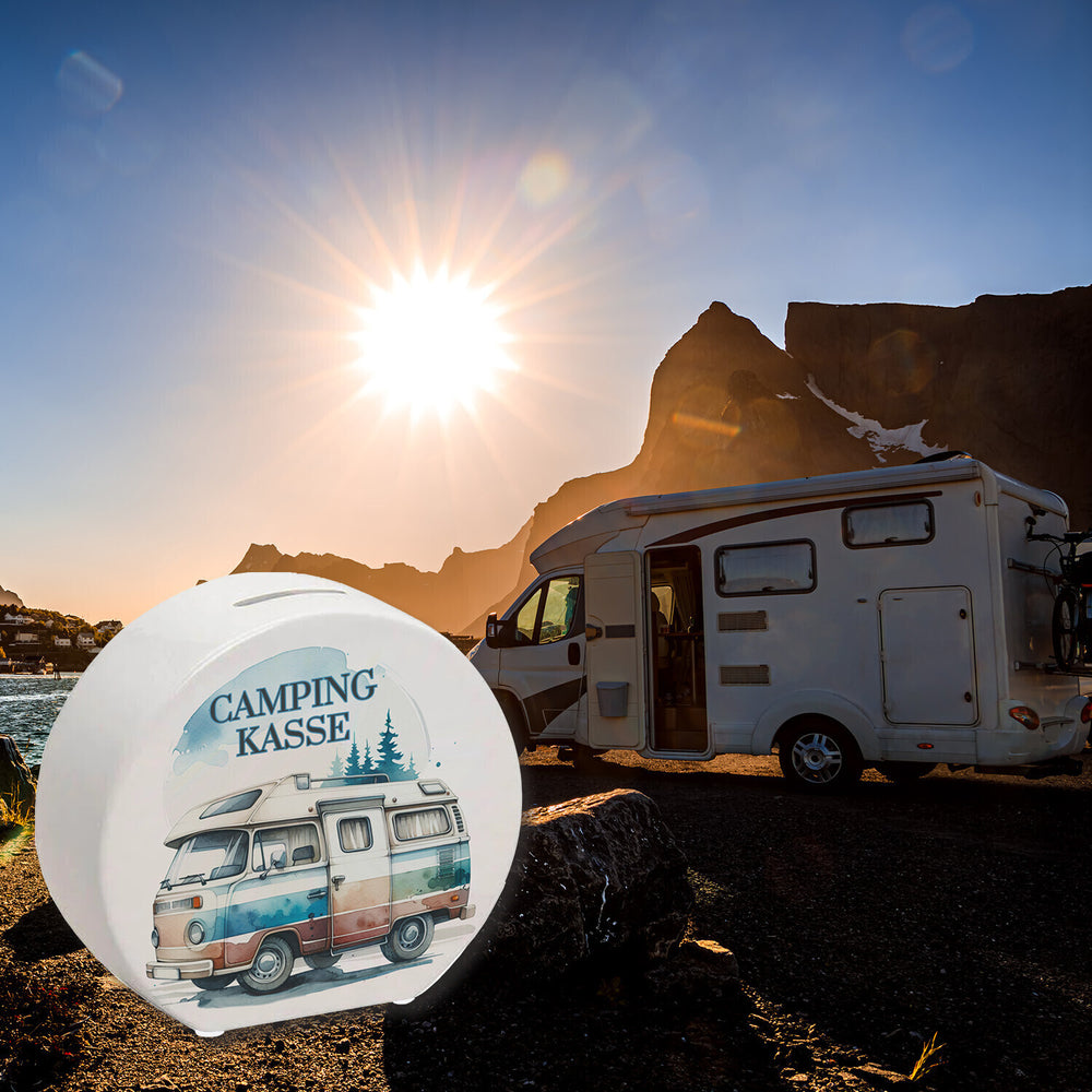 - 1x Campingwagen Spardose mit Spruch Campingkasse in der gewählten Ausführung