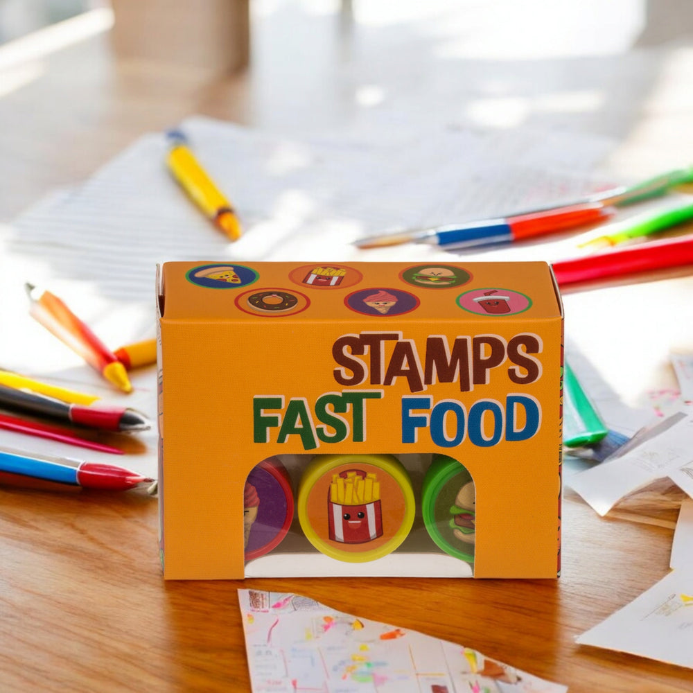 - Warum brauchst du das 6er-Set Fast Food Stempel? Ganz einfach: Um deiner Kreativität richtig Geschmack zu verleihen! Diese niedlichen Motivstempel sind perfekt für Kinder und Erwachsene, um Schulhefte, Bastelprojekte oder DIY-Kunstwerke aufzupeppen. Mit Pizza, Pommes, Burger Co. wird jedes Papier zur Fast-Food-Oase!
