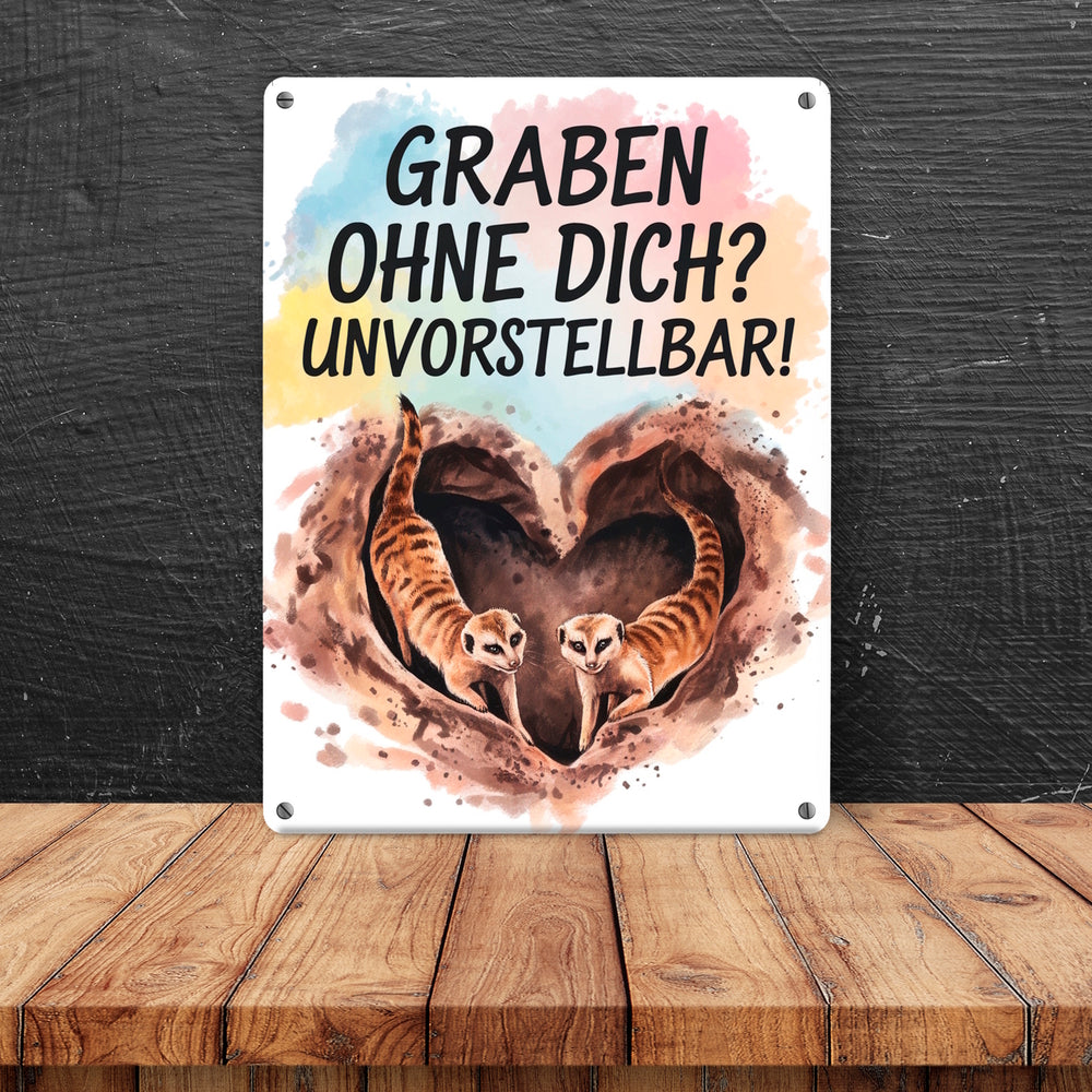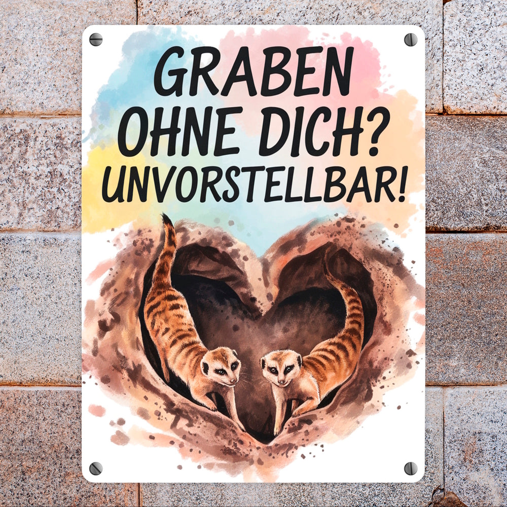 Graben ohne dich? Unvorstellbar! Metallschild in 15x20 cm mit Erdmännchen