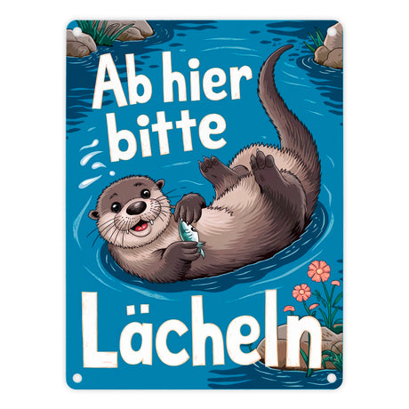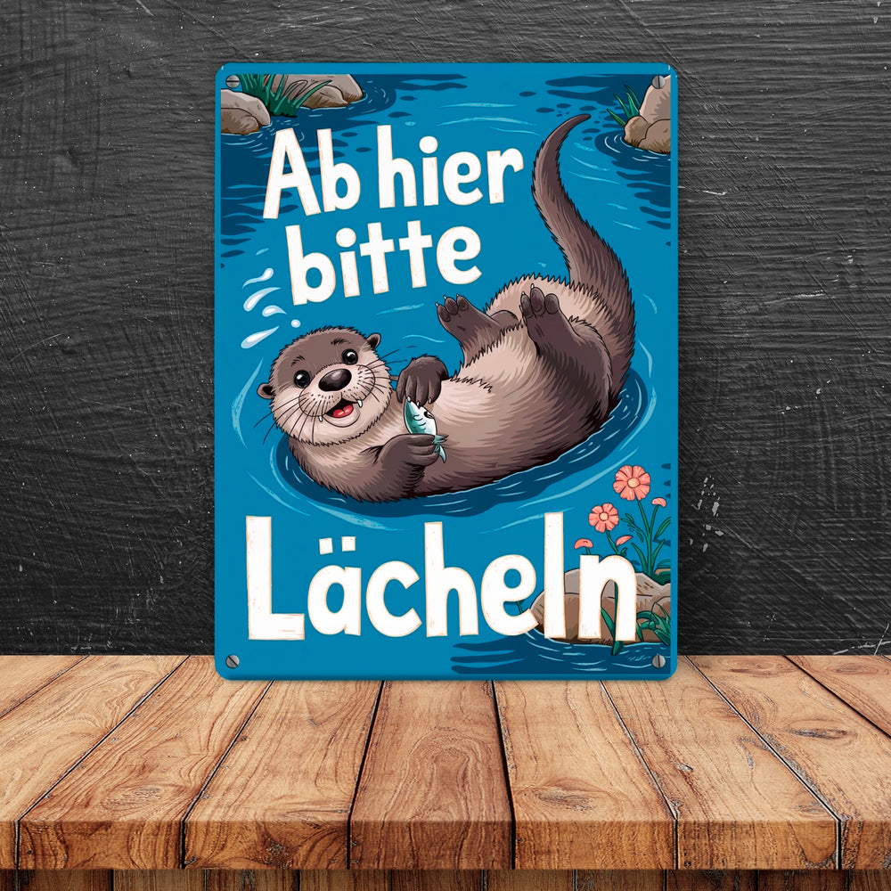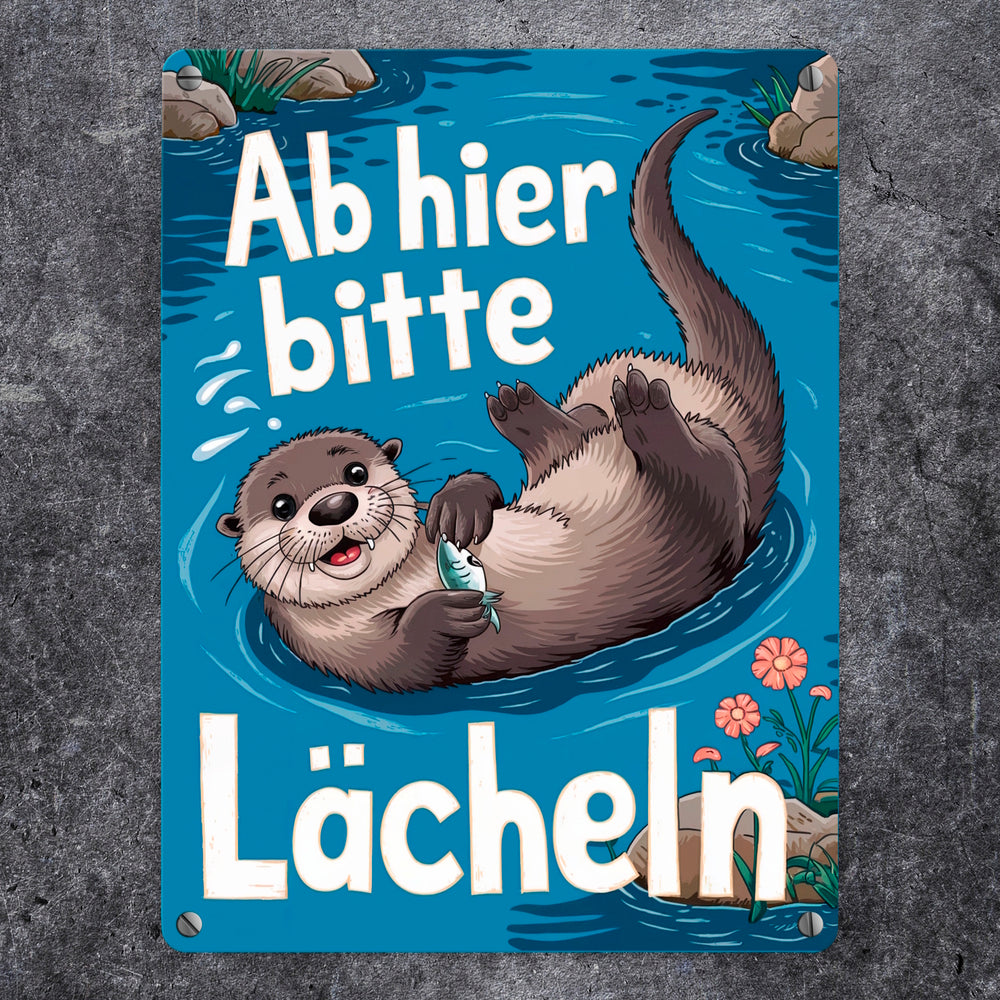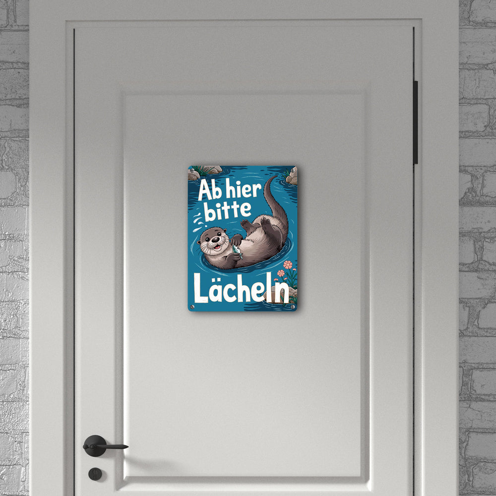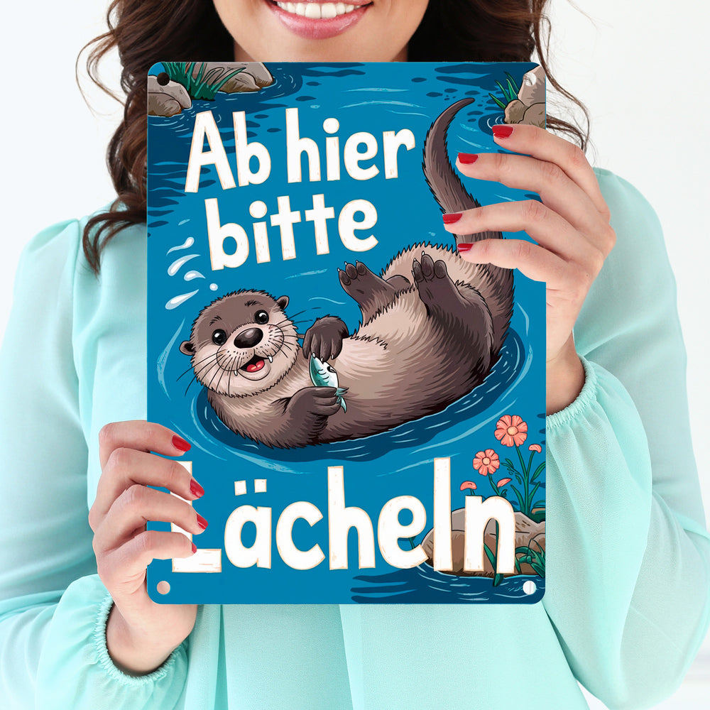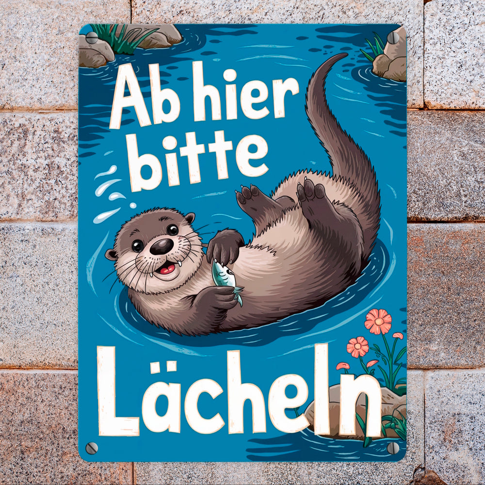 Lachender Otter Metallschild mit Spruch Ab hier bitte lächeln