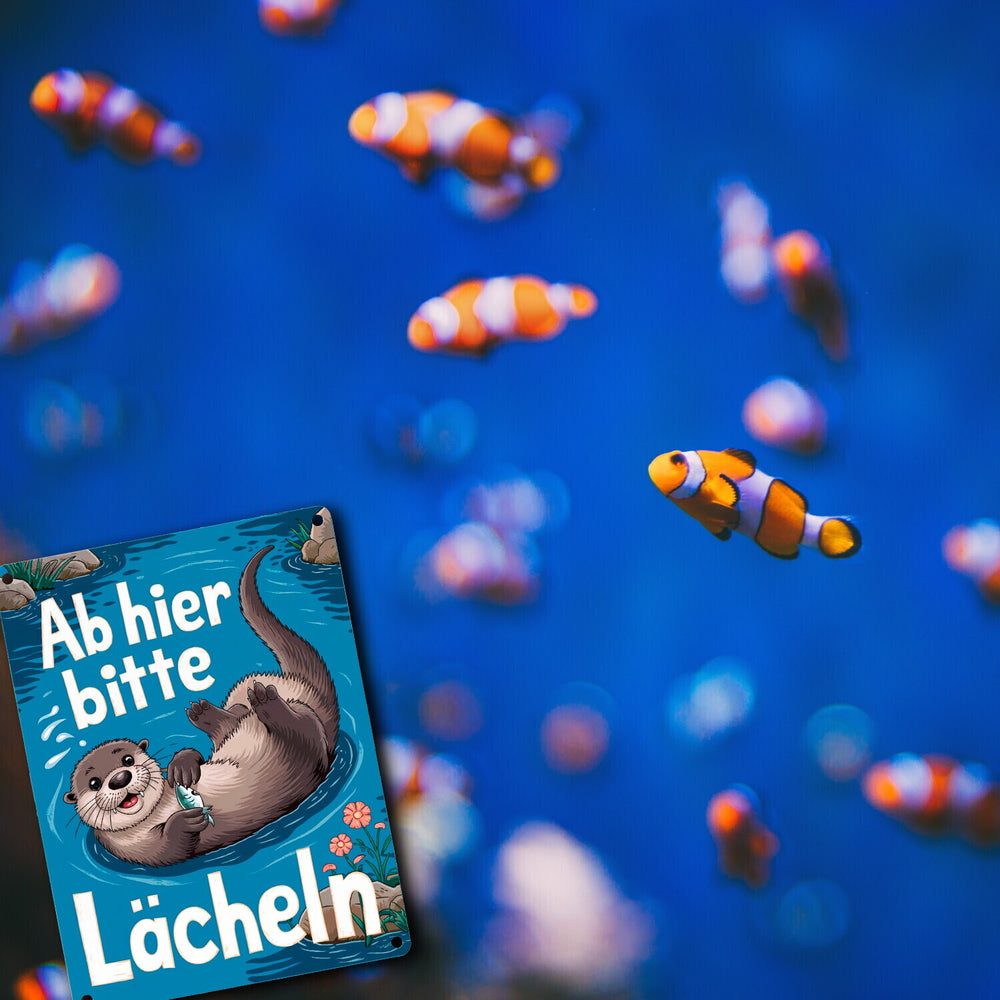 - Wenn du dachtest, dass Otter nicht noch bezaubernder sein könnten, dann schau dir unser Metallschild an! Dieses charmante Kunstwerk zeigt einen fröhlichen Otter, der im blauen Wasser planscht und dich mit einem verschmitzten Grinsen dazu auffordert, doch auch mal die Mundwinkel hochzuziehen. Kleiner Otter, große Laune!