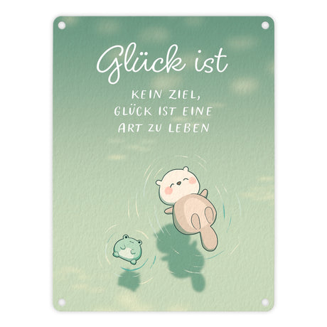 Otter und Frosch Metallschild in 15x20 cm mit Spruch Glück ist eine Lebensart