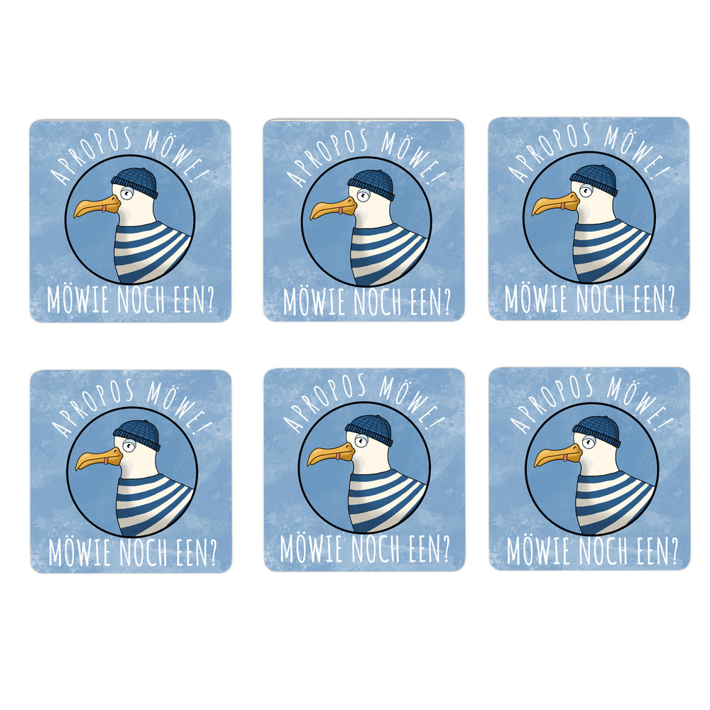 - Das 6er Set Untersetzer bringt maritimen Humor mit Möwen-Motiven auf Ihren Tisch. Jeder Untersetzer zeigt eine lustige Möwe vor einem blauen Hintergrund und trägt den Spruch "Apropos Möwe! Möwie nech een?". Ein echter Hingucker für alle, die norddeutschen Witz und Küstencharme lieben!