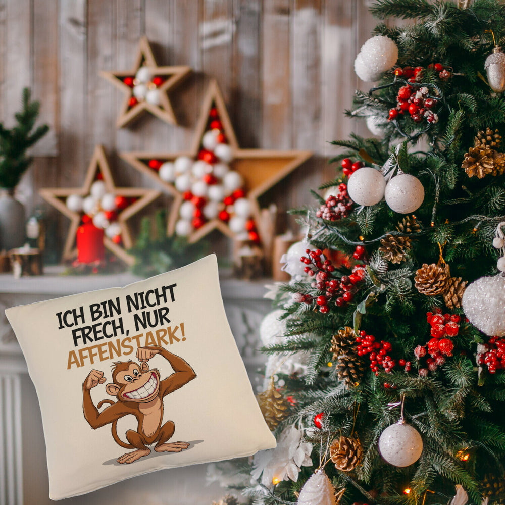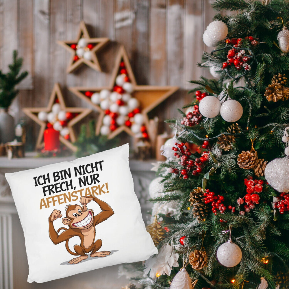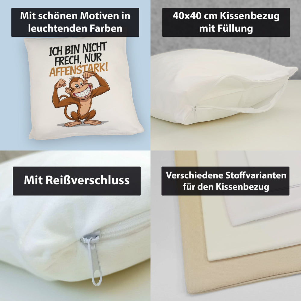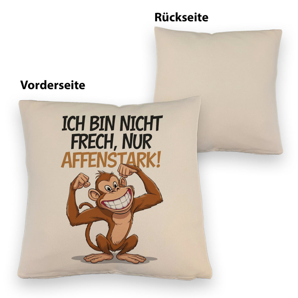 - 1x Nicht frech sondern Affenstark Kissen mit Cartoon Affe in der gewählten Ausführung