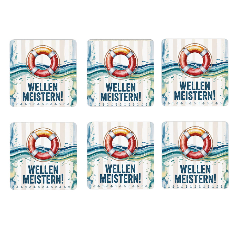 Rettungsring 6er Set Untersetzer aus Holz - Wellen meistern!