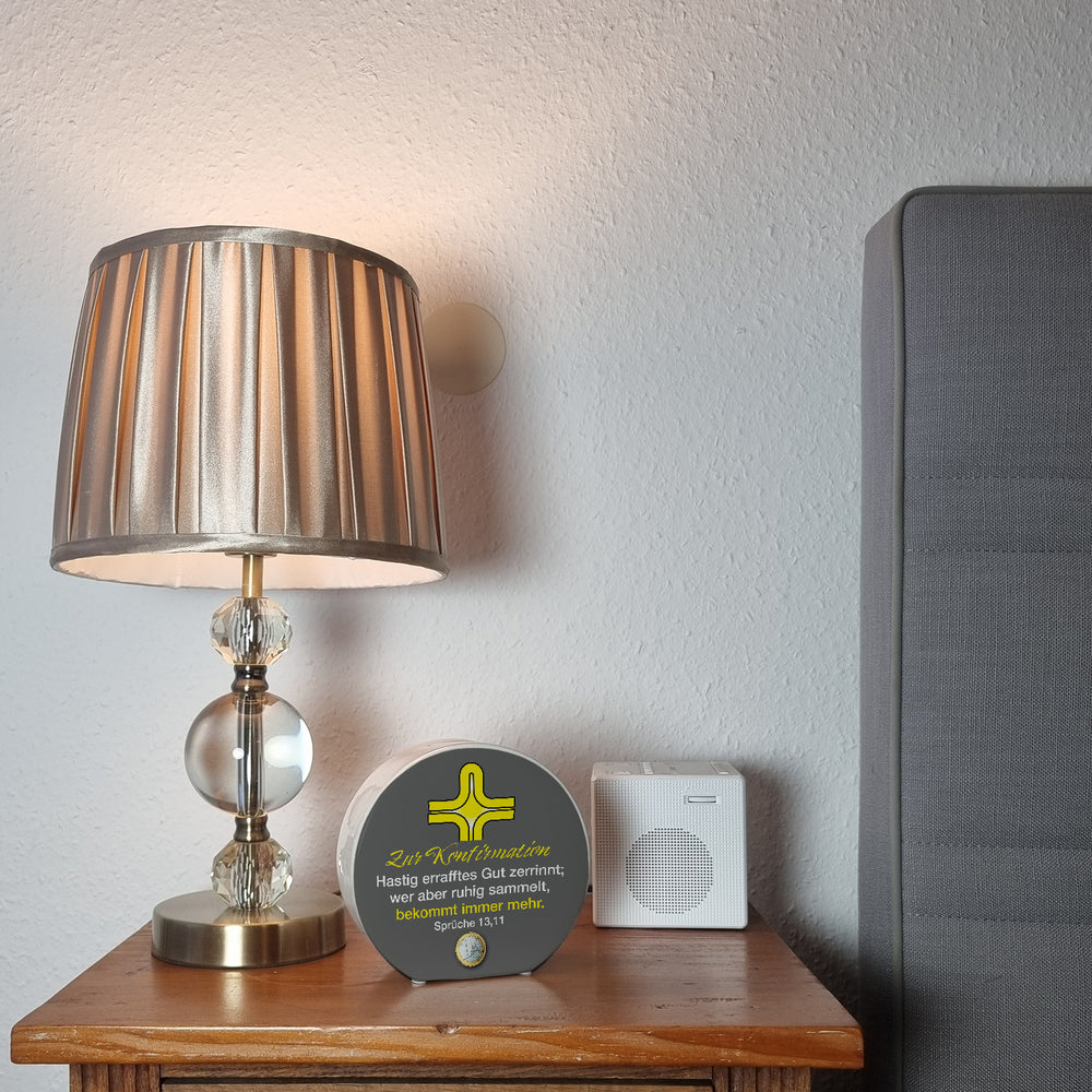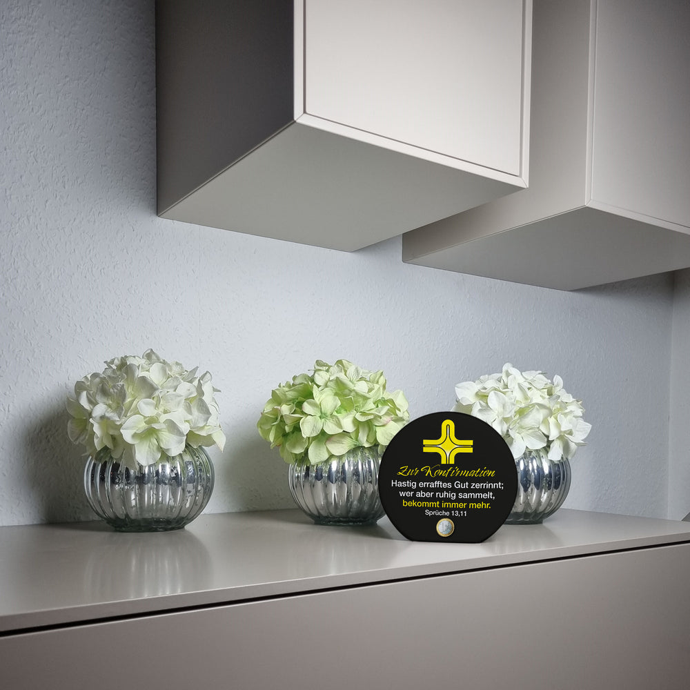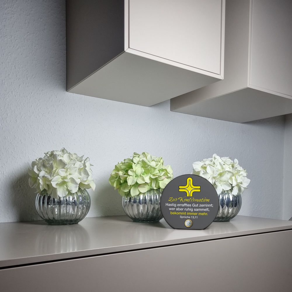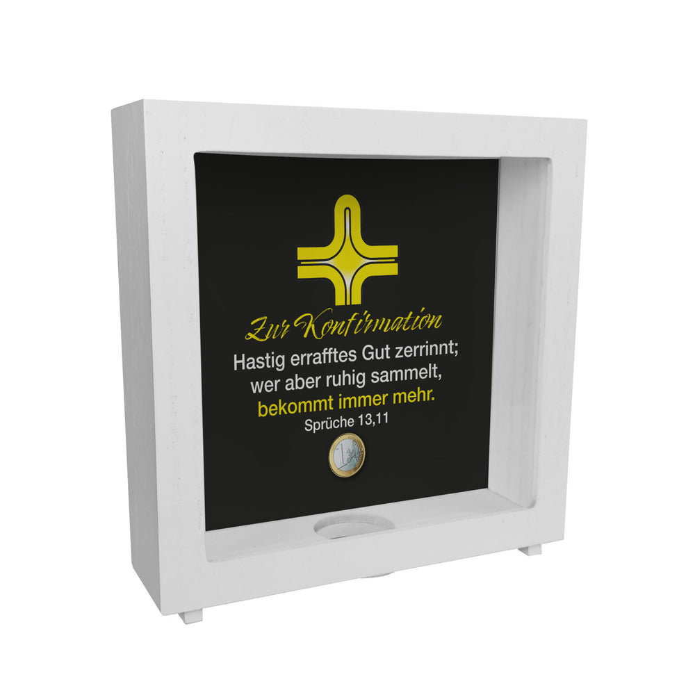 - 1x Sprüche 13,11 Bibelvers Spardose zur Konfirmation in der gewählten Ausführung