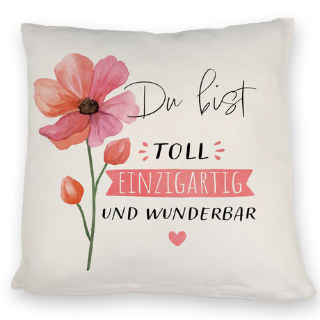 Blume Kissen mit Spruch Du bist toll einzigartig und wunderbar