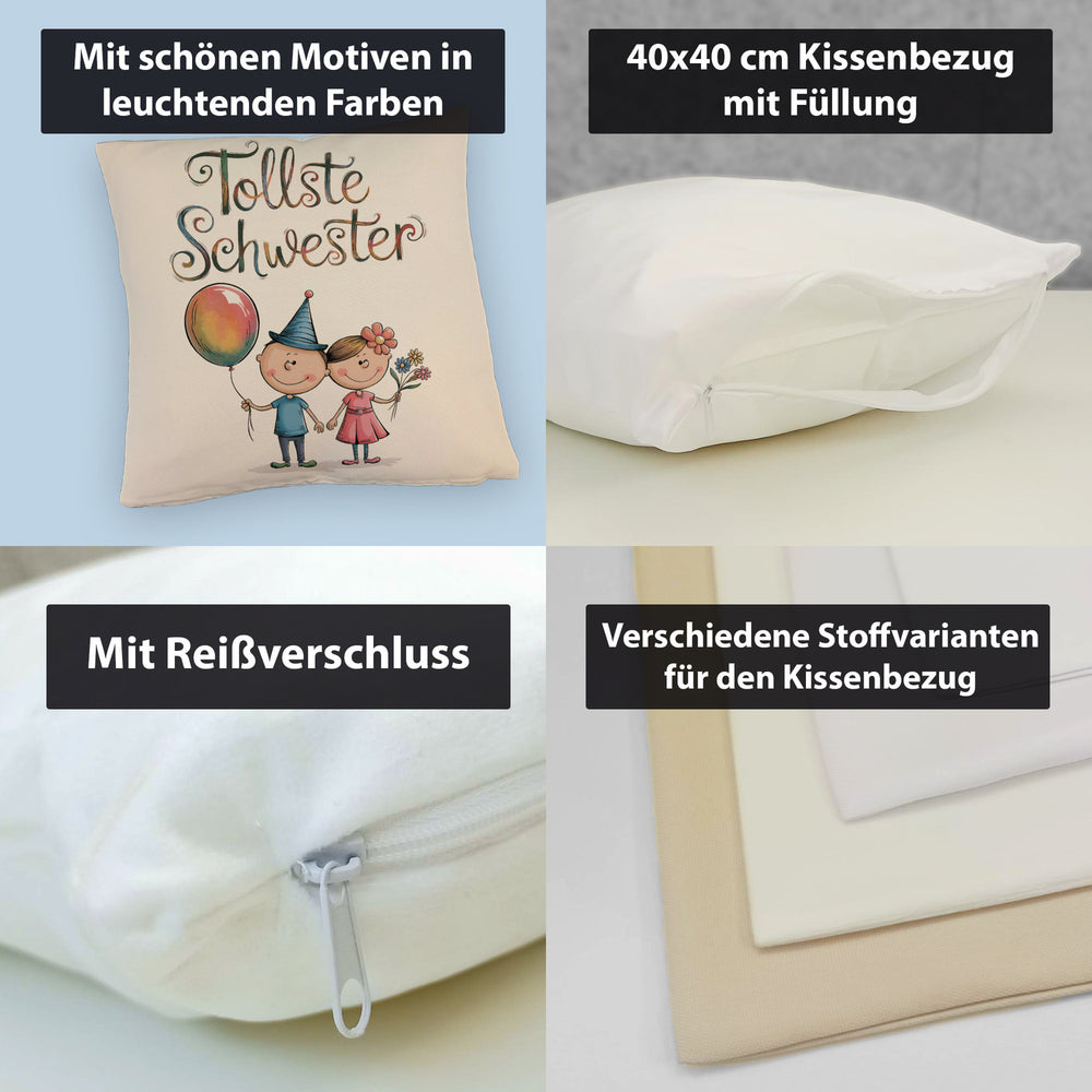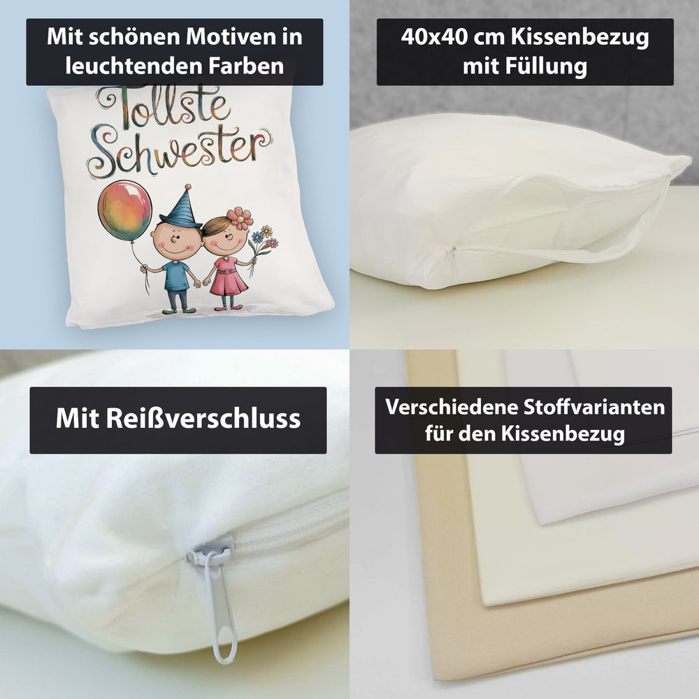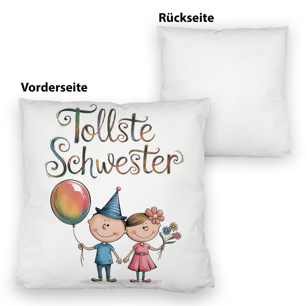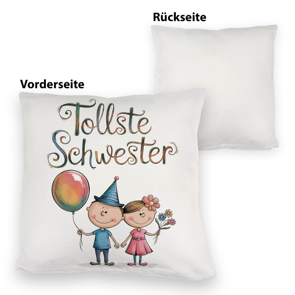- 1x Tollste Schwester Cartoon Kissen für Geschwister in der gewählten Ausführung