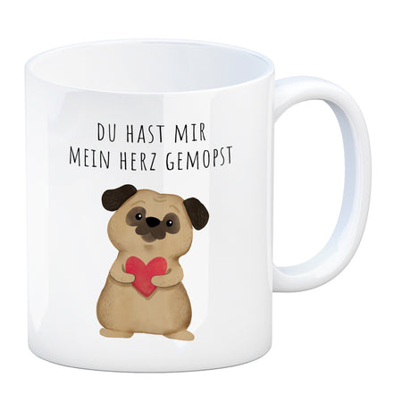 Mops mit Herz Kaffeebecher mit Spruch Du hast mir mein Herz gemopst