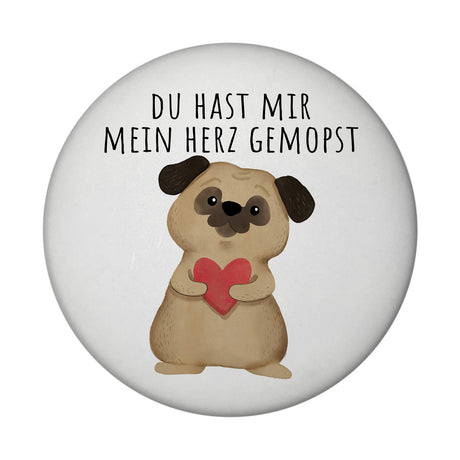 Mops mit Herz Magnet rund mit Spruch Du hast mir mein Herz gemopst
