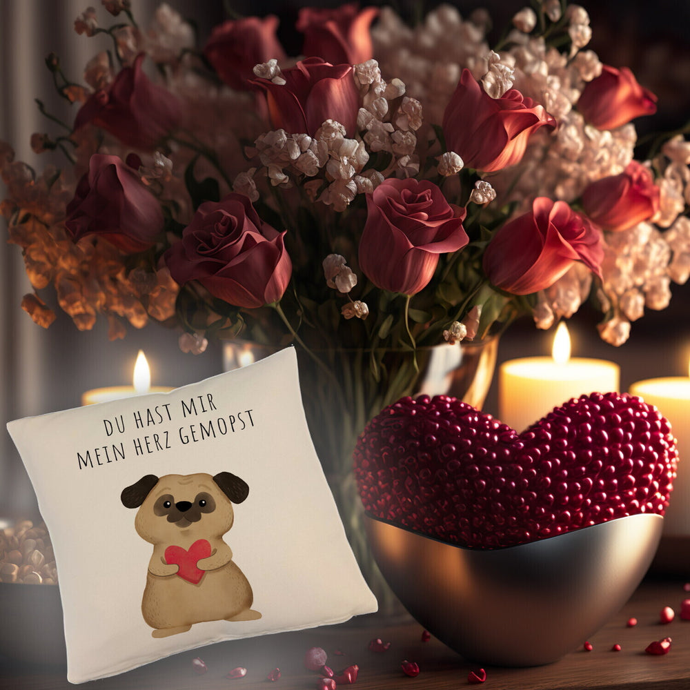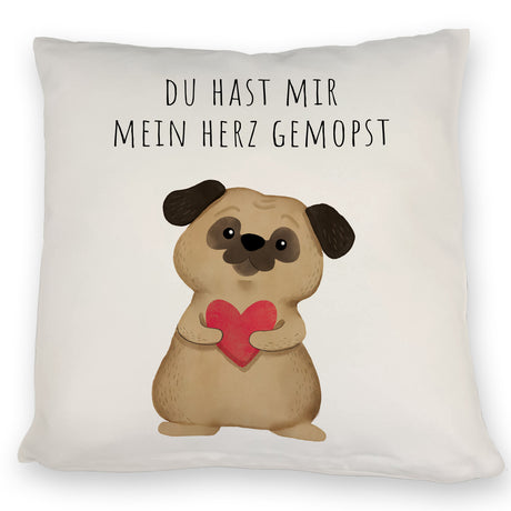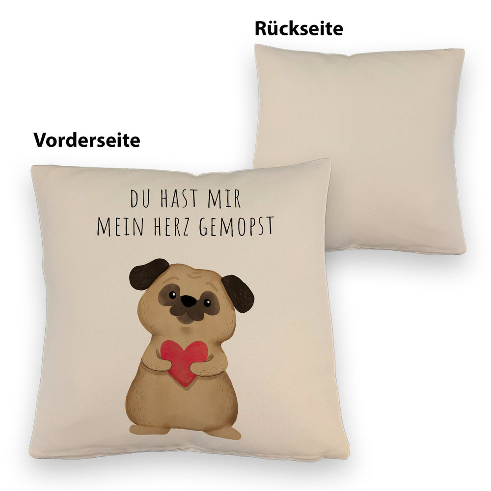Mops mit Herz Kissen mit Spruch Du hast mir mein Herz gemopst