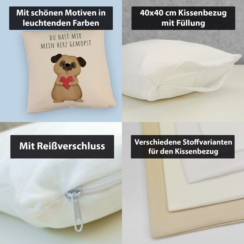 - 1x Mops mit Herz Kissen mit Spruch Du hast mir mein Herz gemopst in der gewählten Ausführung