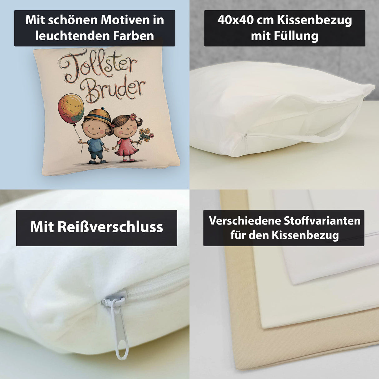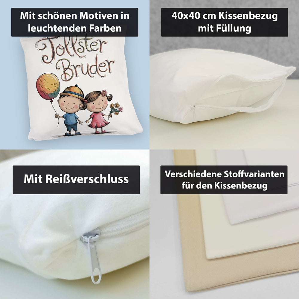 • 1x Tollster Bruder Cartoon Kissen für Geschwister in der gewählten Ausführung