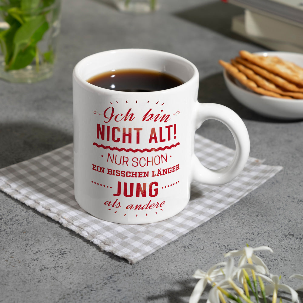 Kaffeebecher mit Spruch: Ich bin nicht alt! Nur schon länger jung