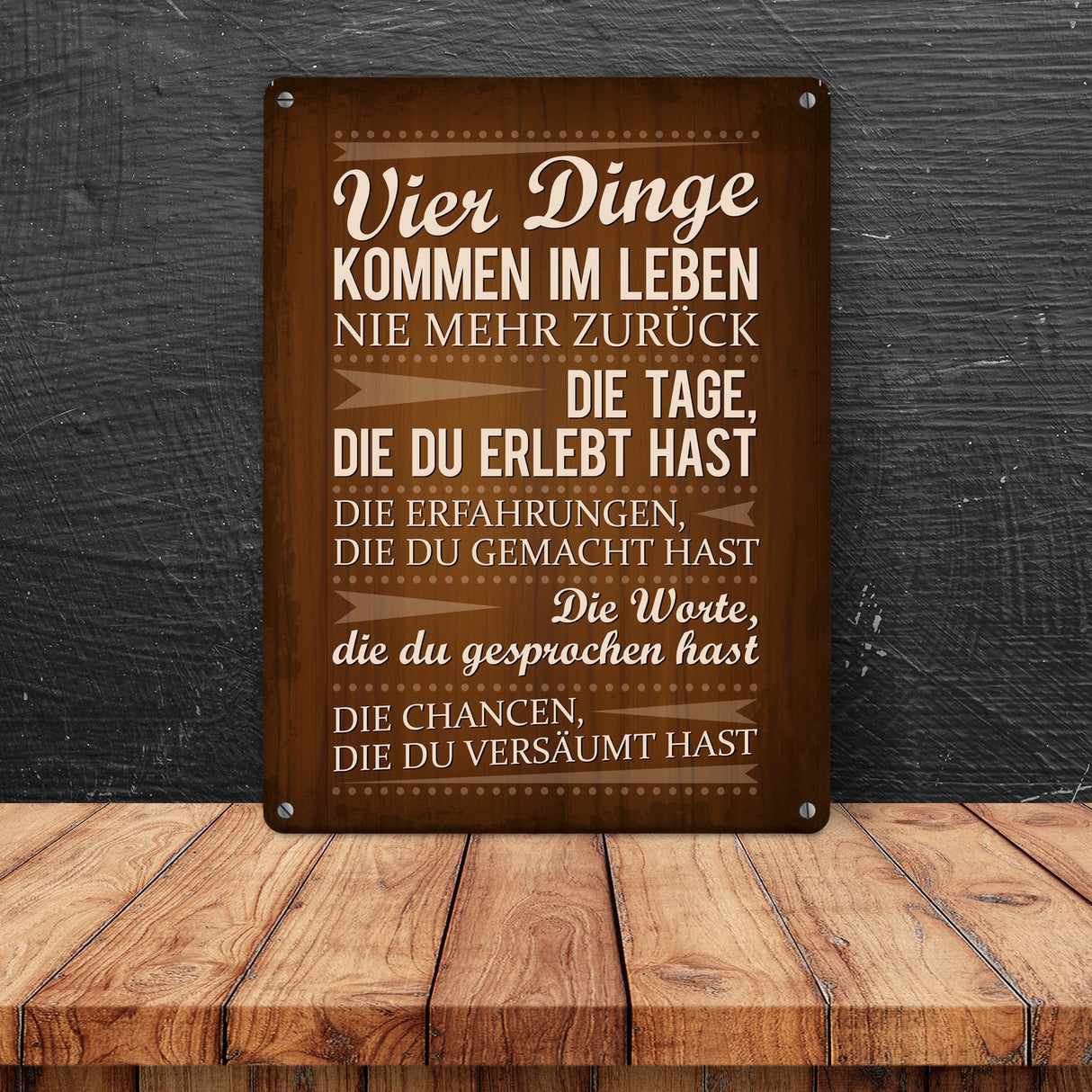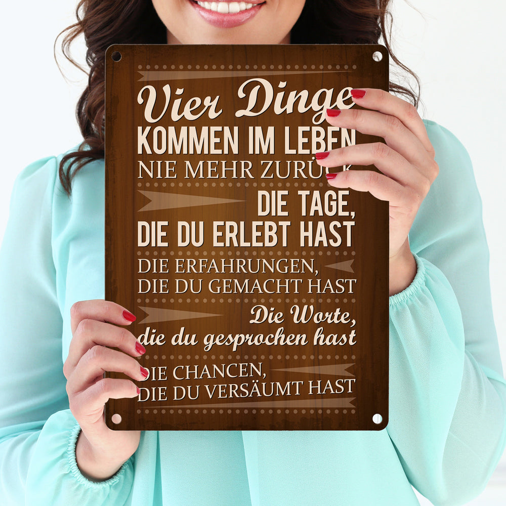 - 1x Vier Dinge kommen im Leben nie mehr zurück Metallschild in der gewählten Größe