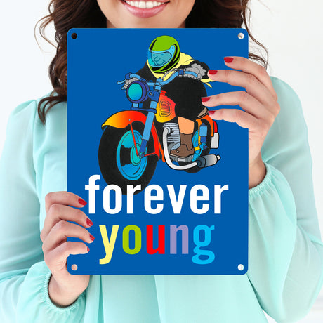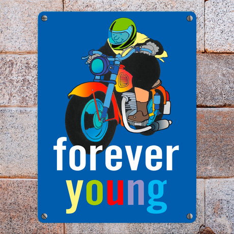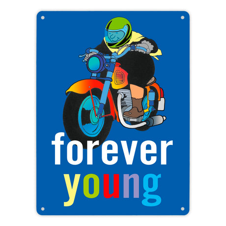 Ab €8,95Grundpreis /Nicht verfügbarAuf LagerMetallschild mit Oma auf Motorrad und Spruch: forever young