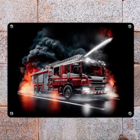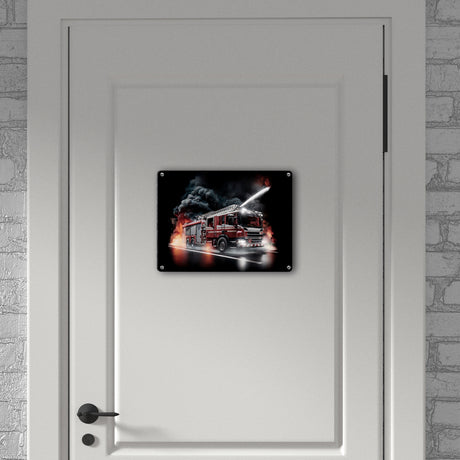 Ab €14,95Grundpreis /Nicht verfügbarAuf LagerFeuerwehrauto kämpft gegen Flammen Metallschild in 15x20 cm