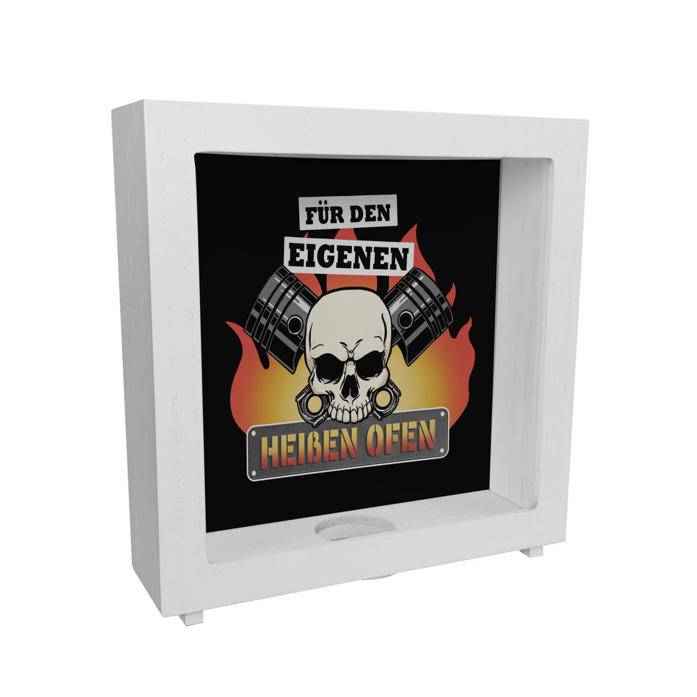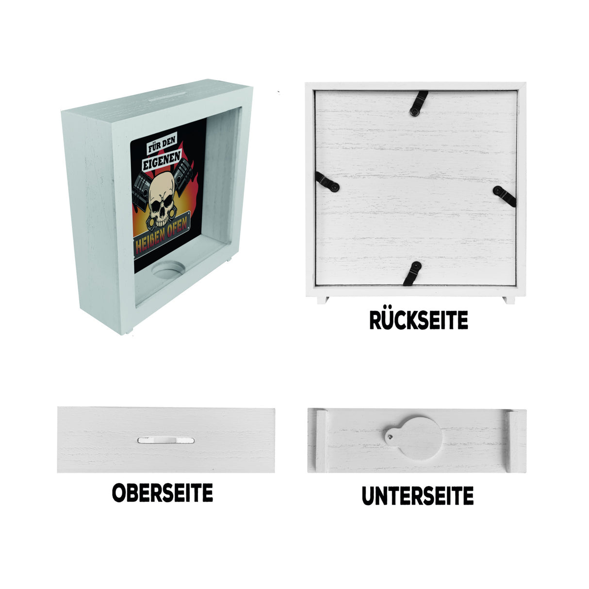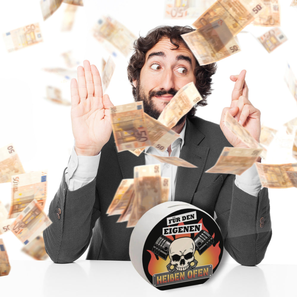 - 1x Für den eigenen heißen Ofen Spardose mit Totenkopf und Kolben in der gewählten Ausführung