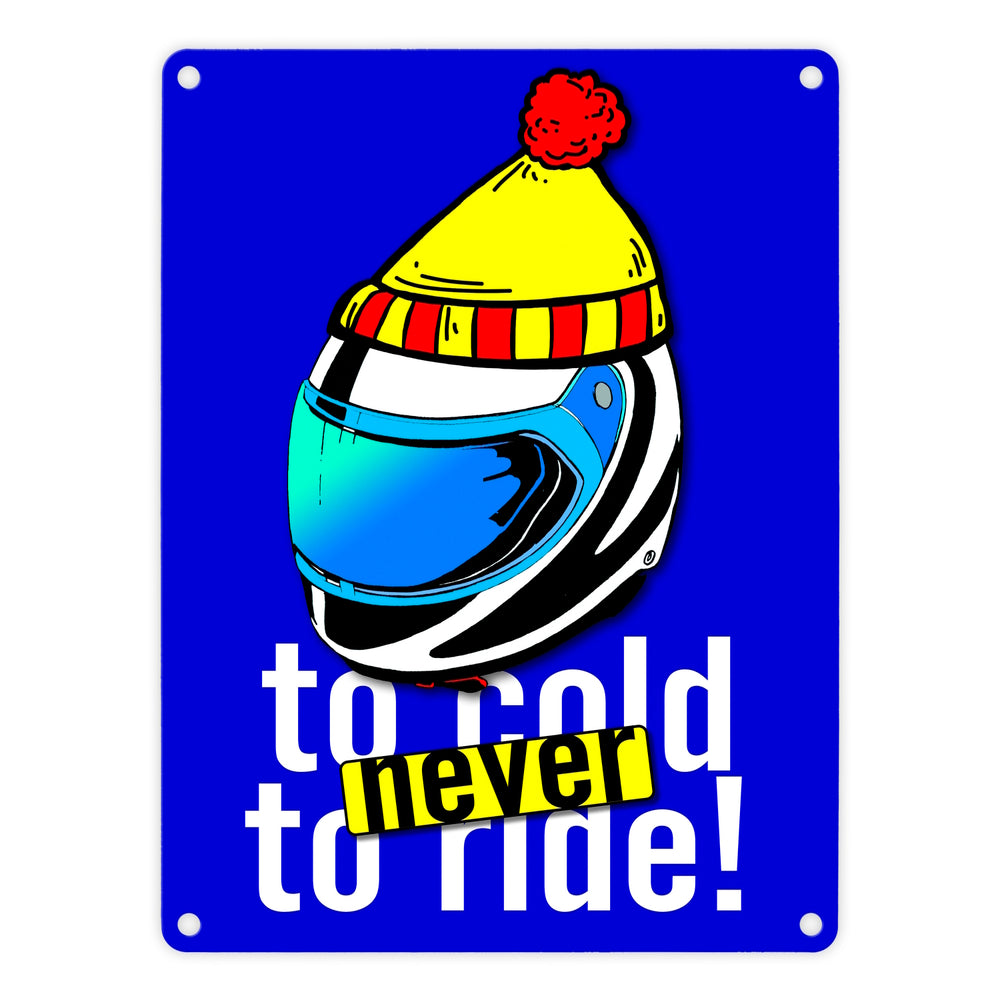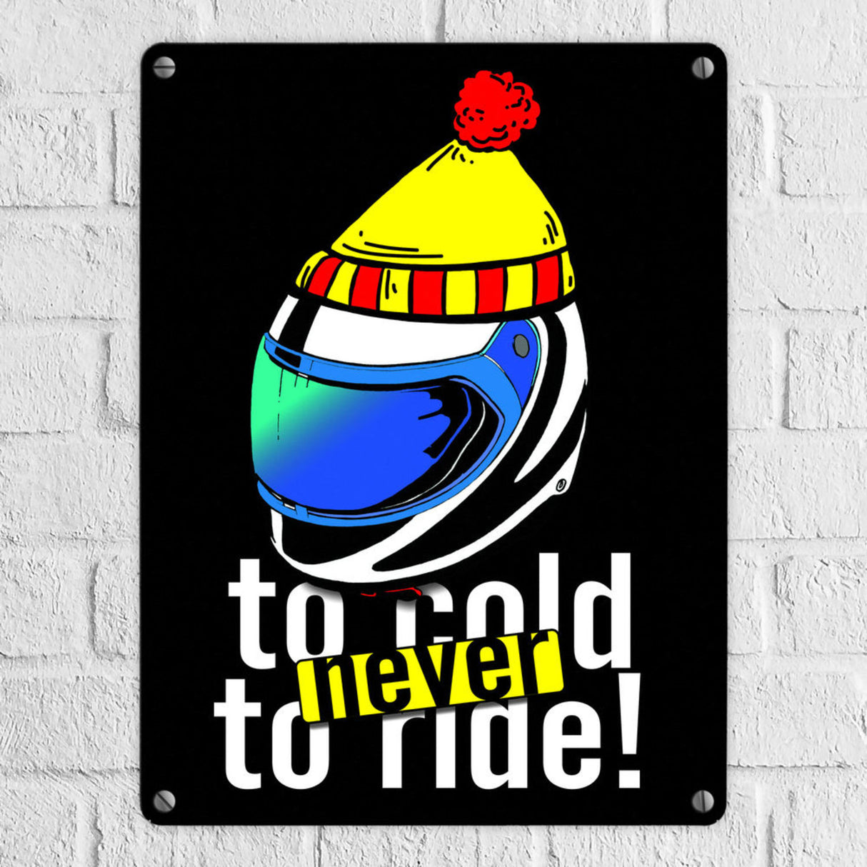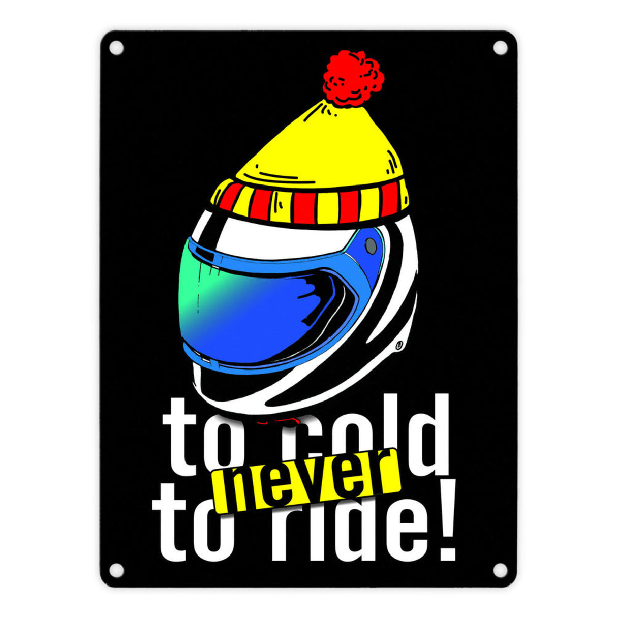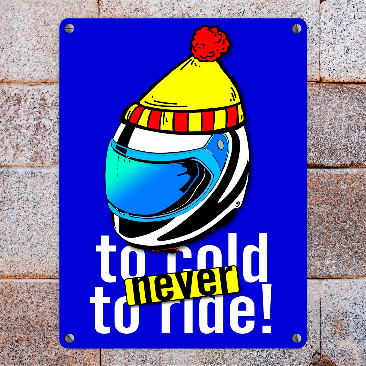 - Metallschilder zum Thema Motorradfahrer im Winter eignen sich super als cooles Dekogeschenk für echte Biker.