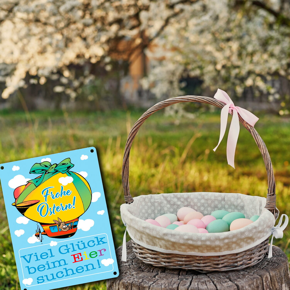 Osterhase im Zeppelin Metallschild zum Thema Frohe Ostern