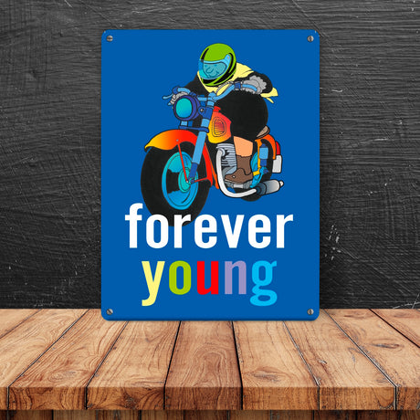 Ab €8,95Grundpreis /Nicht verfügbarAuf LagerMetallschild mit Oma auf Motorrad und Spruch: forever young