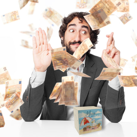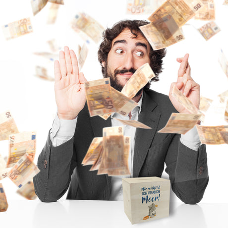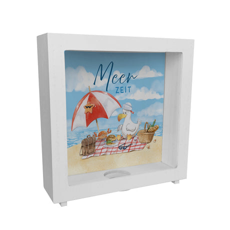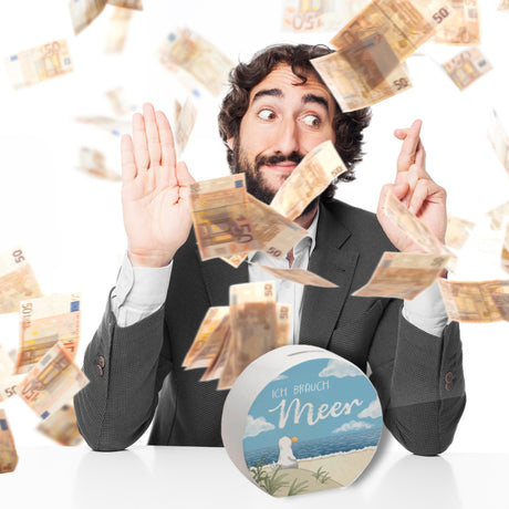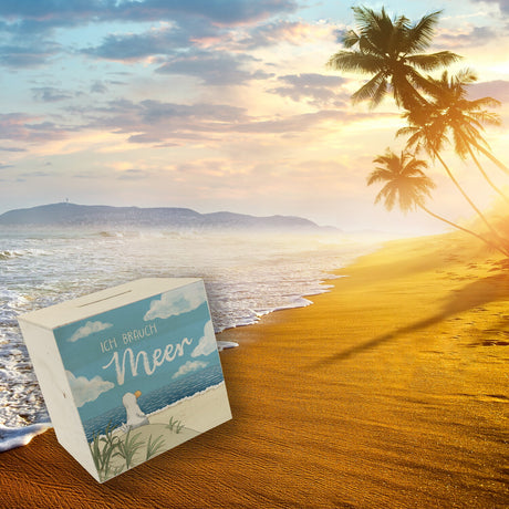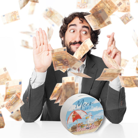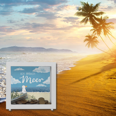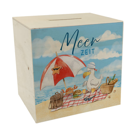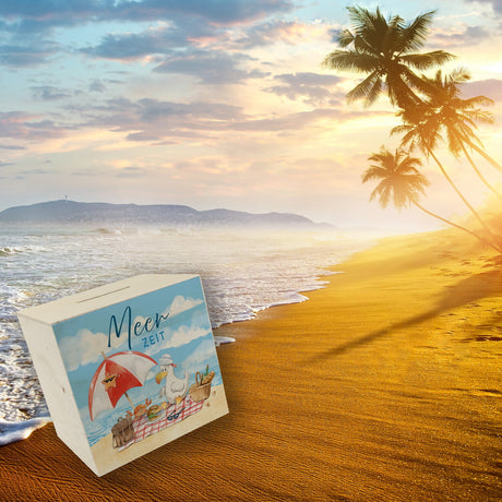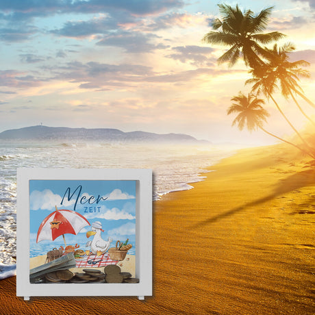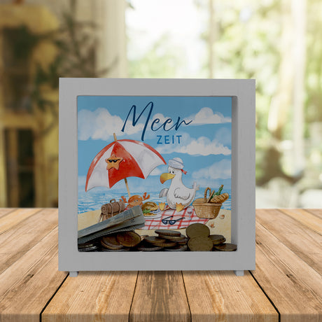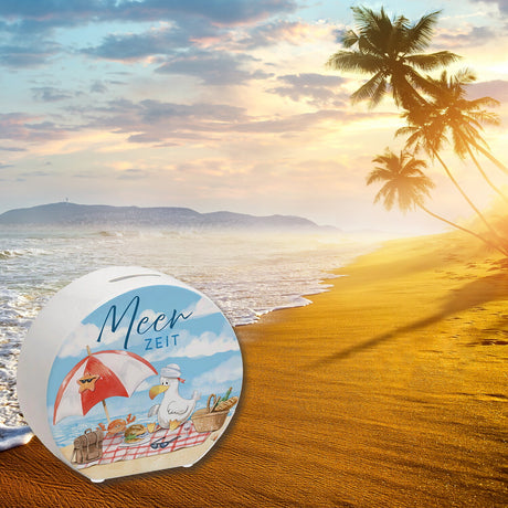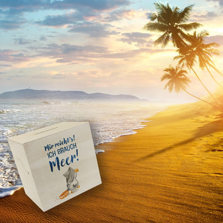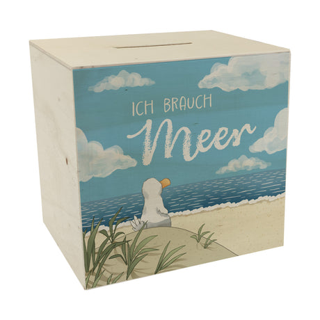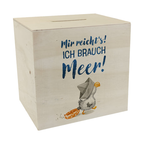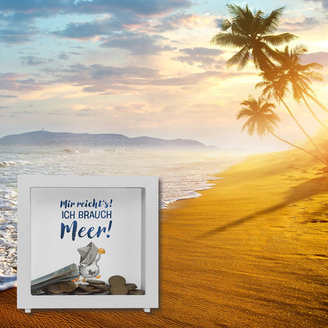 Möwe mit Schwimmreifen Spardose mit Spruch Mir reicht‘s ich brauch Meer