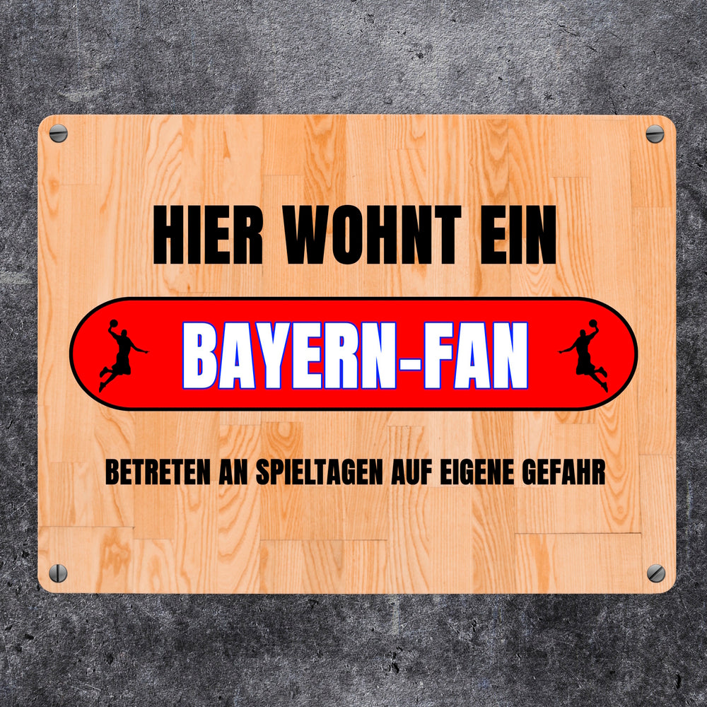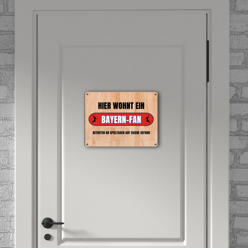 - 1x Hier wohnt ein Bayern-Fan Metallschild in 15x20 cm mit Turnhallenboden Motiv in der gewählten Größe