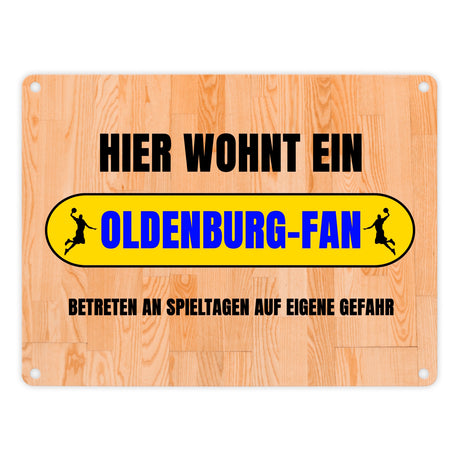 Hier wohnt ein Oldenburg-Fan Metallschild in 15x20 cm mit Turnhallenboden Motiv