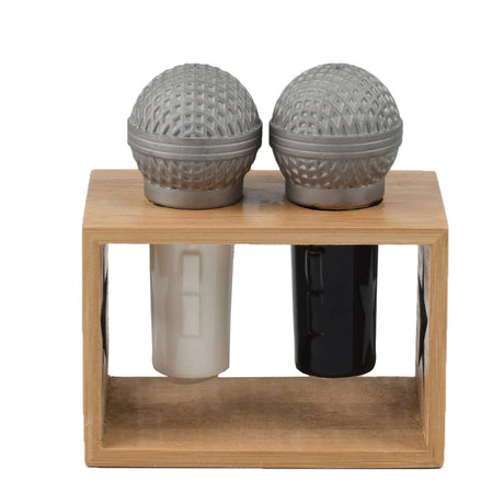 €15,49Grundpreis /Nicht verfügbar Mikrofon Salz- und Pfefferstreuer Set mit Halterung aus Holz
