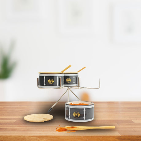 Schlagzeug Gewürzdose mit drei Behältern und Holzlöffeln