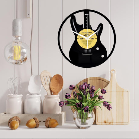 E-Gitarre Vinyl Wanduhr aus einer echten Schallplatte