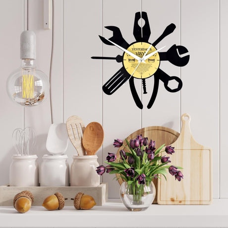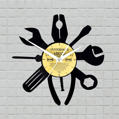 Werkzeug Vinyl Wanduhr aus einer echten Schallplatte