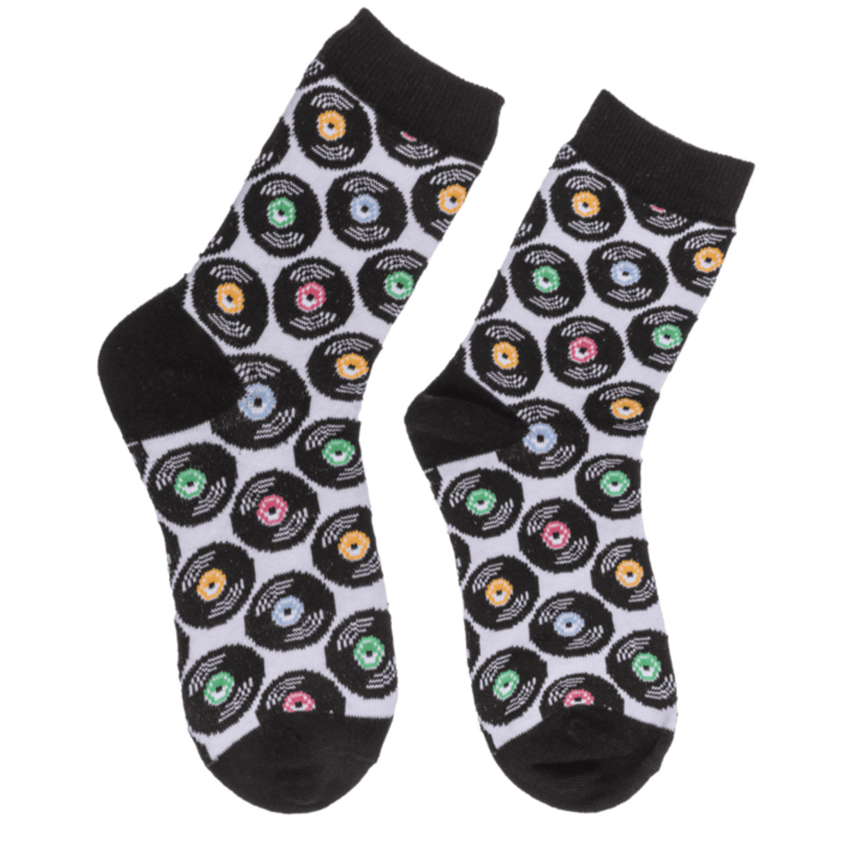 Step into the Groove! Diese Retro-Socken sind das perfekte Geschenk für Vinyl-Liebhaber. Tragen Sie den Beat und tanzen Sie durch den Tag. Unwiderstehlich cool! 70% Baumwolle, 25% Polyester, 5% Elastan. | Für Waschmaschine geeignet, bitte Warn- und Pflegehinweise beachten.
